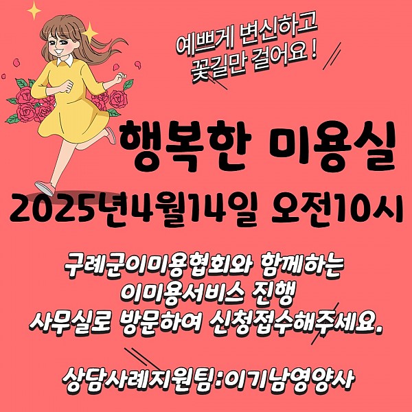 상담사례지원팀에서는 구례이미용협회와 연계하여 행복한 미용실 서비스를 진행하였습니다.