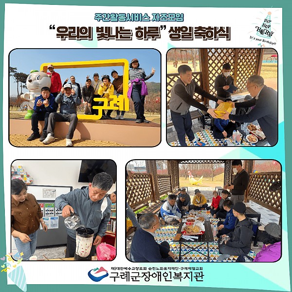 주간활동서비스에서는 자조활동으로 1분기 생일잔치를 맞아 특별한 야외 활동을 진행하였습니다.