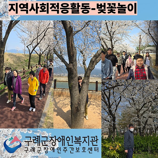 주간보호센터에서는 20.25.4.2.(수) 오후 지역사회적응활동(5회차) 일정으로 벚꽃놀이를 다녀왔습니다. 봄정취를 만끽할 수 있는 화창한 날을 배경으로 센터이용인 및 종사자, 자원봉사자 등이 벚꽃길을 거닐며 장난놀이와 농담, 웃음을 주고받으며 일상을 충전하는 시간을 갖고 돌아왔습니다.
