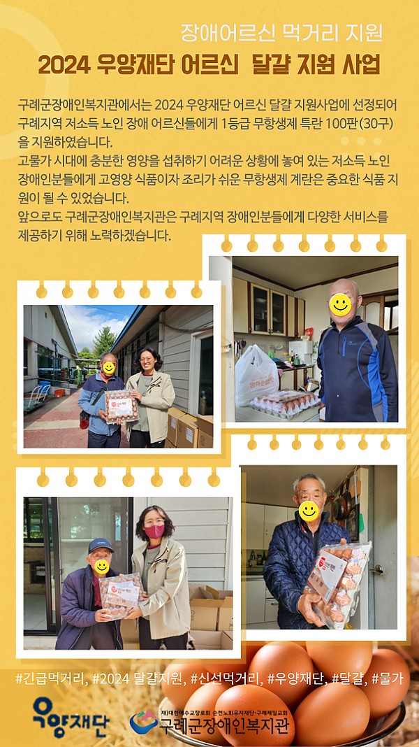 [상담사례지원팀]2024 우양재단 저소득 장애어르신 달걀 지원 사업