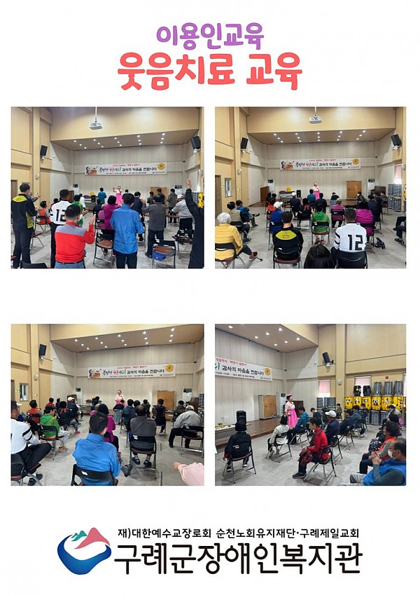 이번 교육은 웃음치료 전문 변은경 강사님을 섭외하여 복지관 이용자들을 대상으로 웃음치료 교육을 실시하였습니다.
