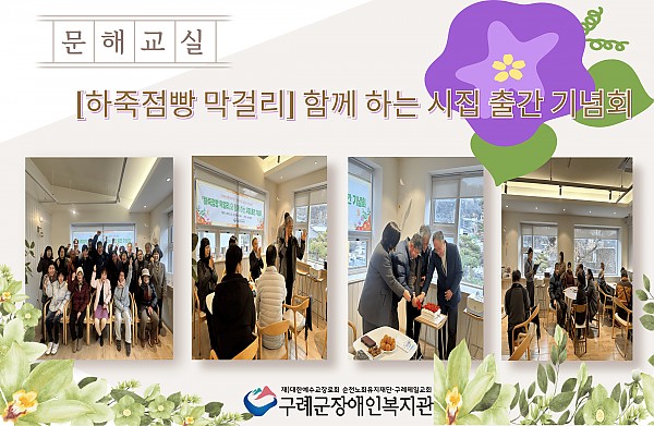 평생교육지원팀에서는 문해교실 프로그램 참여자들의 창작 시를 담은 시집 『하죽점빵 막걸리』를 출간하고, 2025년 12월 23일(수) 시집 출간 기념회를 개최하였습니다. 이번 행사는 작품에 담긴 의미를 공유하고, 창작의 성과를 지역사회와 함께 나누는 자리로 마련되었습니다.