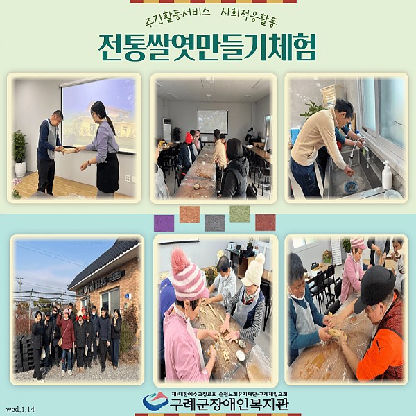 사회서비스센터 주간활동서비스팀은 2026년 첫 사회적응활동으로 담양에 위치한 ‘강순임 슬로우푸드’를 방문하여 전통 쌀엿 만들기 체험을 진행하였습니다.