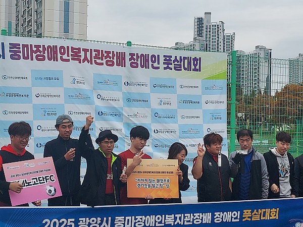 지난 11월 8일(토) 광양시중마장애인복지관 주관으로 개최된 ‘광양시 중마장애인복지관장배 장애인 풋살대회’에 우리 복지관 구례노고단FC가 참여하여 총 6개 팀 중 준우승이라는 값진 성과를 이루었습니다.
