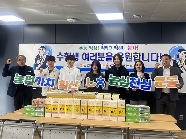 작년에 이어 두번째로 진행된 이번 행사는 쌀 소비 촉진과 청소년 응원의 의미를 함께 담아 마련된 것으로 복지관과 농협이 협력하여 우리 쌀로 만든 수능 합격떡 88개를 준비해 수험생들에게 전달하였습니다.