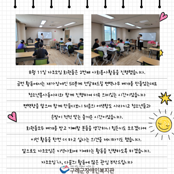 - 장소 : 구례군장애인복지관 별관 2층 소회의실
