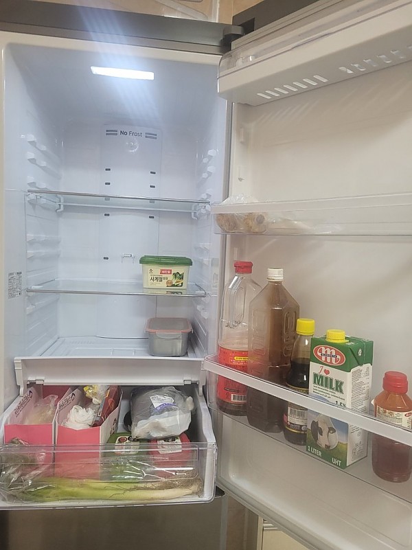 일단 냉장고에 있는 물건을 밖으로 꺼내 텅빈 공간의 선반과 수납함을 깨끗하게 닦고, 1회기에 배웠던 버릴 물건과 유지해야 물건이 무엇인지를 구분하여 다시 넣어 정리하는 과정을 진행하였습니다.
