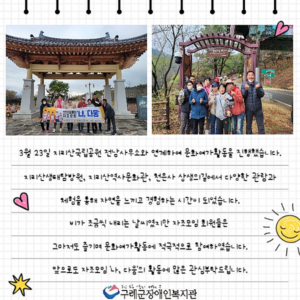 - 장소 : 지리산생태탐방원, 지리산역사문화관, 천은사상생의길