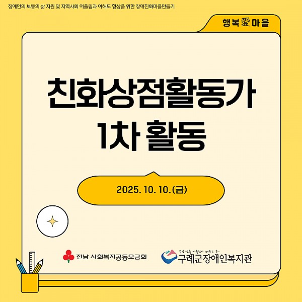 구례군장애인복지관에서는 전남사회복지공동모금회의 지원을 받아 행복愛마을을 진행하고 있습니다.