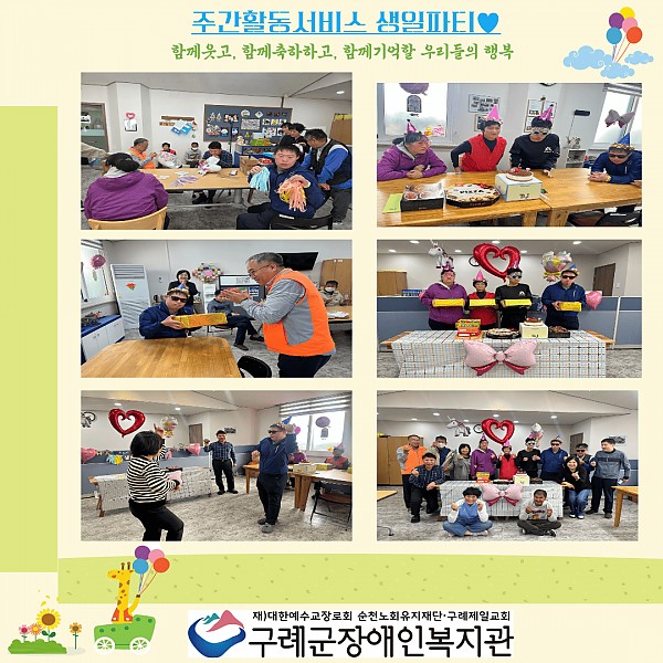 주간활동서비스 이번 3분기 생일잔치는 자조활동 참여자들이 직접 준비한 특별한 파티로 진행되었습니다.