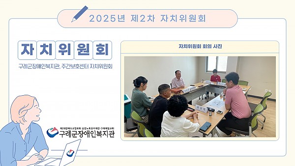 구례군장애인복지관은 이용인분들의 자기결정권을 존중하고, 의사 표현과 소통의 기회를 확대하기 위해 이용인 자치위원회를 운영하고 있습니다.