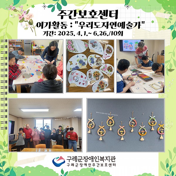 주간보호센터에서는 여가활동으로 구례공공도서관 연계하여 2025. 4. 10.(목). ~ 2025. 6. 26.(목)/ 10회기 진행하였습니다.