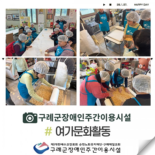 우리 주간이용시설에서는 여가문화활동의 일환으로 이용자분들과 함께 남원 웅치마을을 방문하여 전통 간식 만들기 체험을 진행하였습니다.