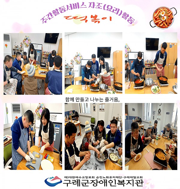 사회서비스센터 주간활동서비스 이번 요리활동 시간에는 이용자들과 함께 떡볶기 만들기를 진행하였습니다.