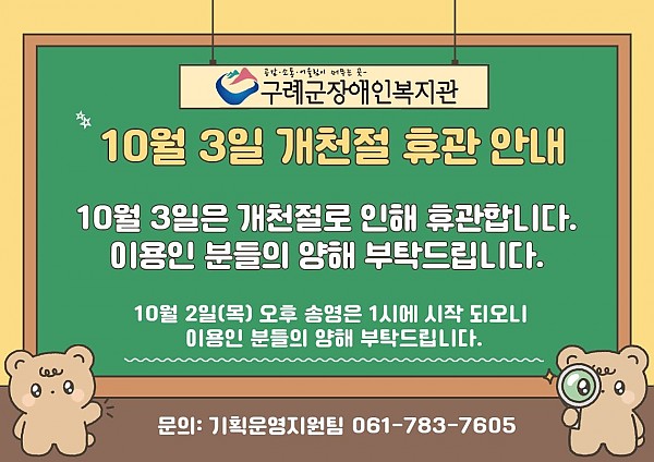 2025년 10월 3일(금) 복지관이 개천절로 인해 휴관합니다.