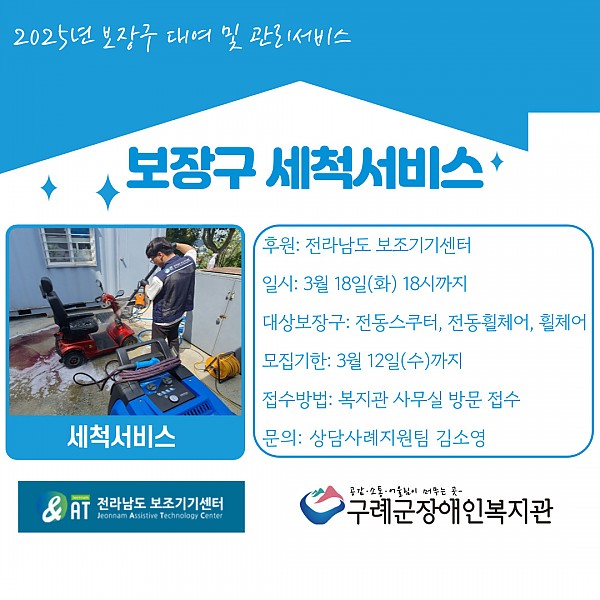 보장구 세척 서비스와 관련하여 신청자 모집합니다.