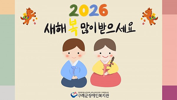 2026년 새해를 맞아 모든 분들의 가정에 건강과 행복이 가득하시길 기원합니다. 구례군장애인복지관은 새해에도 장애인과 지역사회가 함께하는 따뜻한 복지를 실현하기 위해 최선을 다하겠습니다.