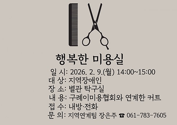 [지역연계팀] 2월 관내이미용서비스 '행복한미용실' 안내
