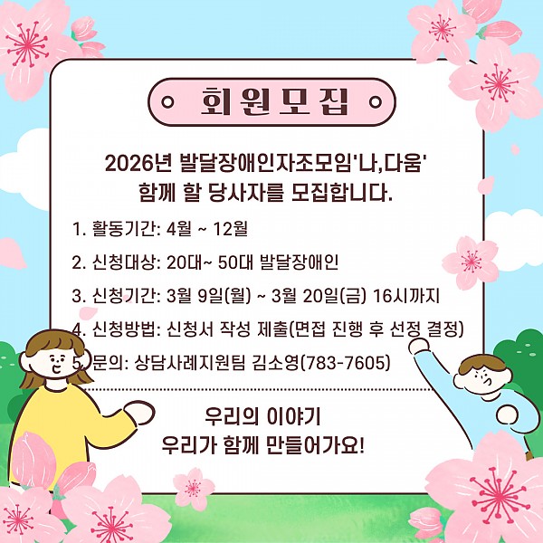 [상담사례지원팀]발달장애인자조모임 대상자 모집합니다.